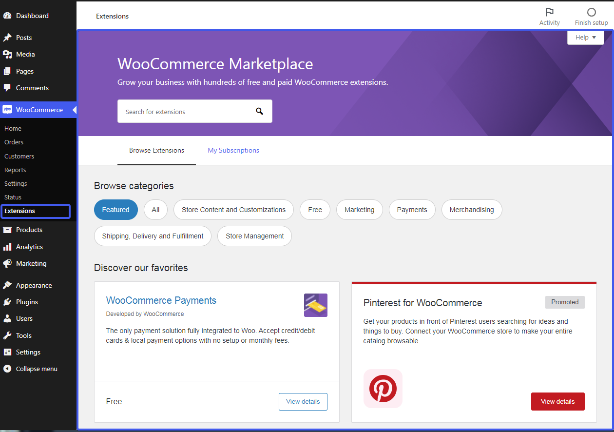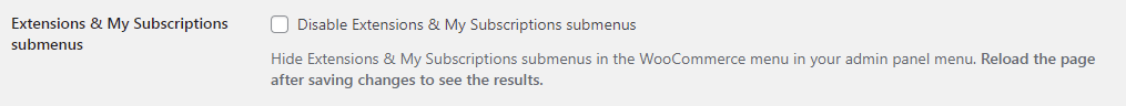 Hide Extensions & My Subscriptions submenus in the WooCommerce menu in your admin panel menu