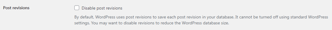 By default, WordPress uses post revisions to save each post revision in your database. It cannot be turned off using standard WordPress settings. You may want to disable revisions to reduce the WordPress database size.