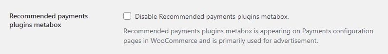Disable Recommended payments plugins metabox