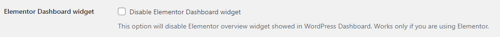 This option will disable the Elementor overview widget shown in WordPress Dashboard. Works only if you are using Elementor.