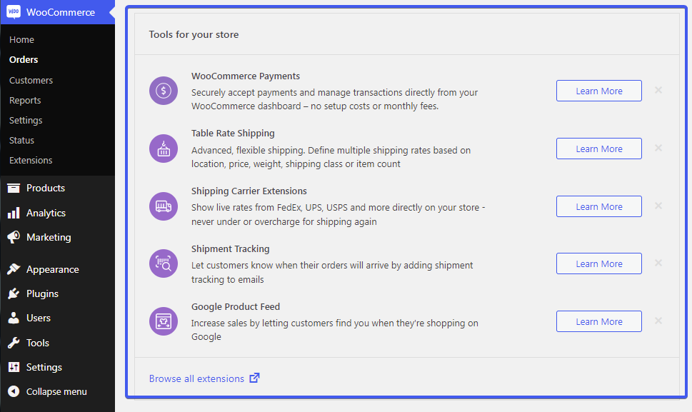- Disable WooCommerce Marketplace Suggestions