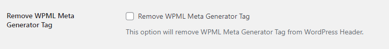 This option will remove WPML Meta Generator Tag from WordPress Header.